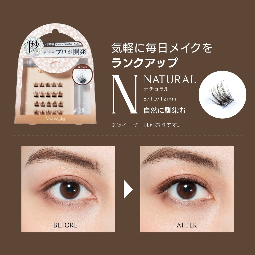 高品質な毛束を、接着剤を使わずに簡単に装着可能。肌に優しく、手軽に印象的な目元を演出できます。自然な見た目と多彩なデザインが魅力で、エクステをしていても装着が可能。サロンに行く前の応急処置にもおすすめです。